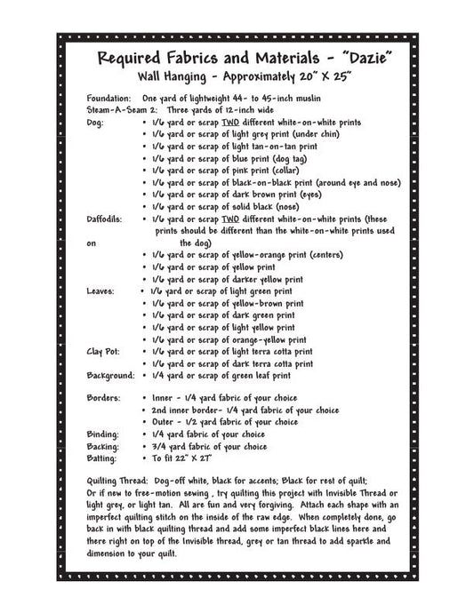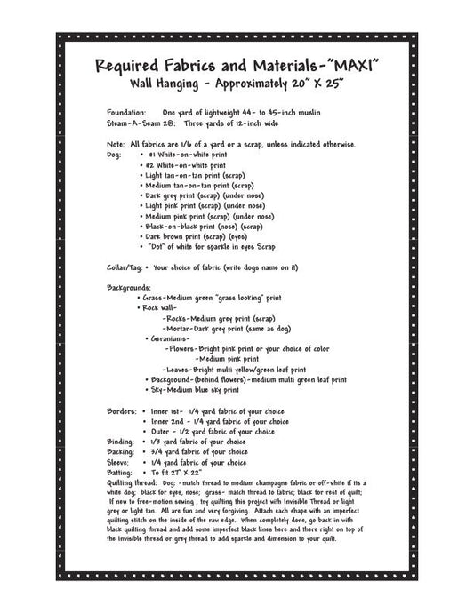 Bichone Frise "Dazie" Quilt Pattern, Approximately Size 20” x 25”, Design to Free-Motion Line from Dog Gone Quilts