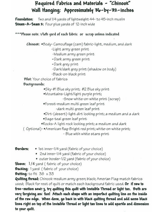 Chinook Helicopter Quilt Pattern, Approximately Size 36” x 32”, Design to Free-Motion Line from Dog Gone Quilts