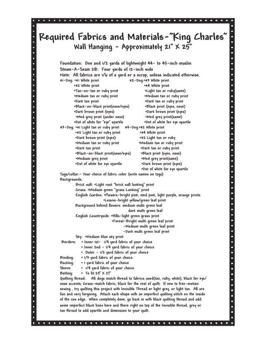 Cavalier King Charles Quilt Pattern, Approximately Size 21” x 25”, Design to Free-Motion Line from Dog Gone Quilts