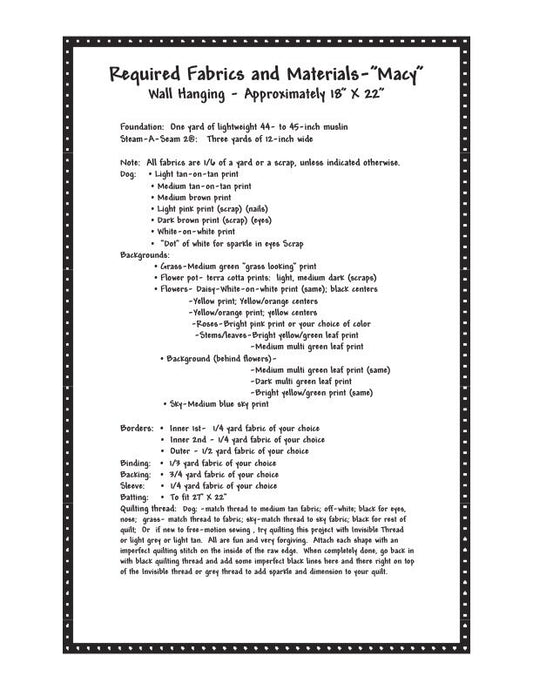 Beagle "Macy" Quilt Pattern - Approximately Size 18” x 22”, Design to Free-Motion Line - Designer Sue Olson