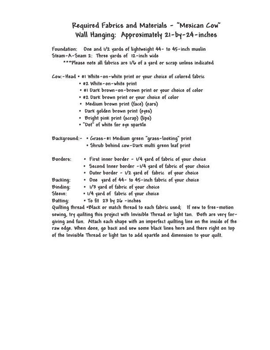 Mexican Cow Quilt Pattern, Approximately Size 21” x 24”, Design to Free-Motion Line from Dog Gone Quilts