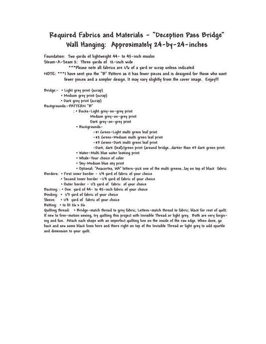 Deception Pass Bridge Quilt Pattern, Approximately Size 34” x 30”, Design to Free-Motion Line from Dog Gone Quilts