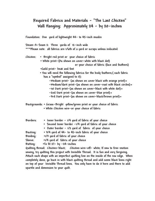 The Last Chicken Quilt Pattern, Approximately Size 24” x 20”, Design to Free-Motion Line from Dog Gone Quilts