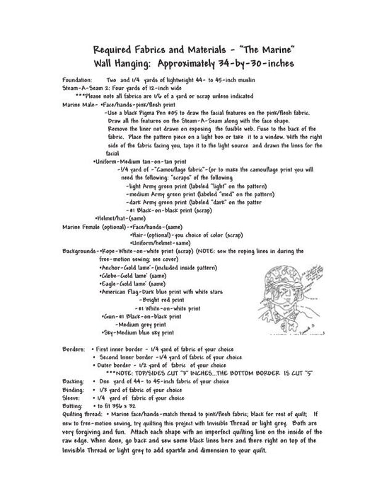 The Marine Quilt Pattern, Approximately Size 34” x 30”, Design to Free-Motion Line from Dog Gone Quilts
