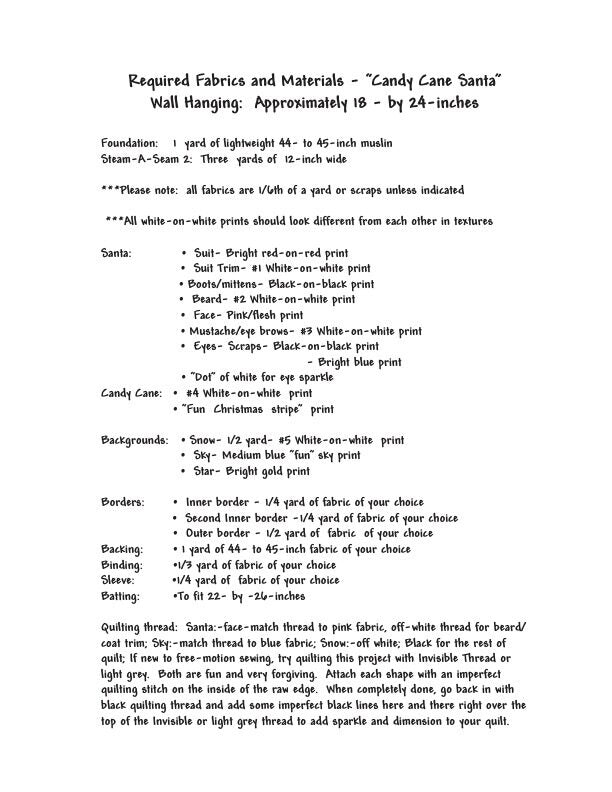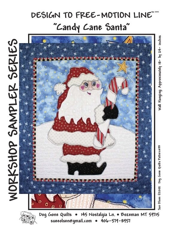 Candy Cane Santa Quilt Pattern, Approximately Size 35” x 25”, Design to Free-Motion Line from Dog Gone Quilts