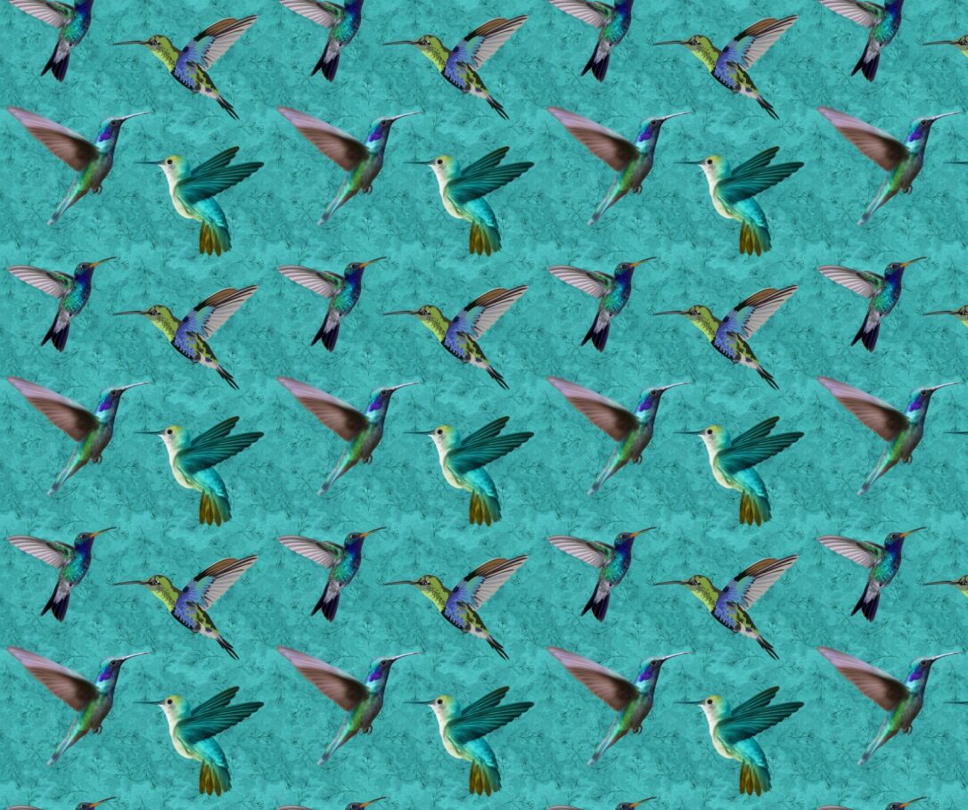 Hummingbirds on teal fabric sold by the yard. Quality quilt shop fabric 42 - 44 wide. Multiple yards purchased will come in one cut.