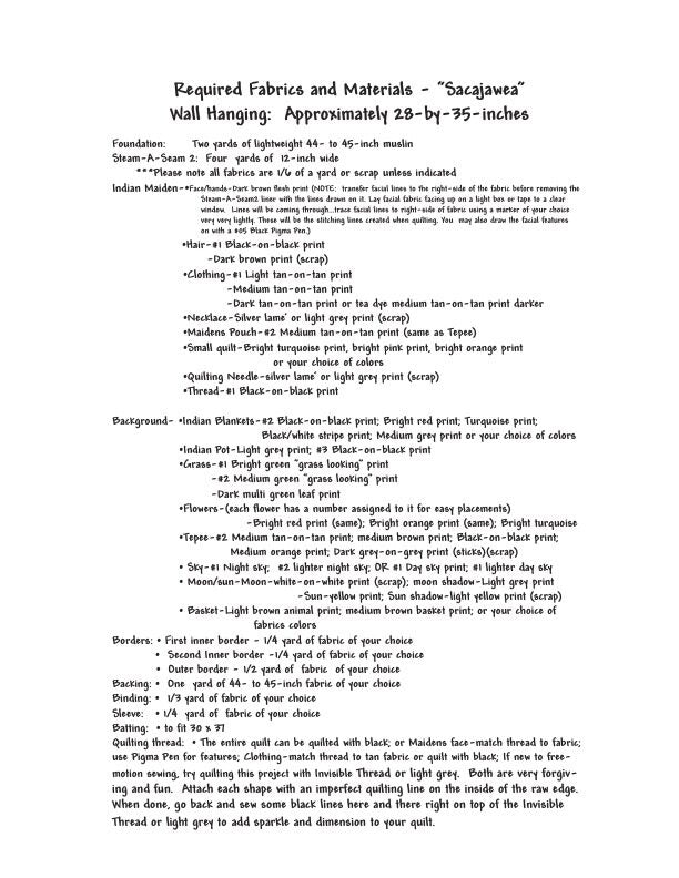 The American frontier and the journey across the plains have inspired many a legend – one of the most enduring is that of Sacajawea! Sue Olsen of Dog Gone QuiltsTM has immortalized Sacajawea with fabric in this heirloom quality, unique wall-hanging quilt. Use your own creativity and vision to make Sacajawea a focal point in your home.