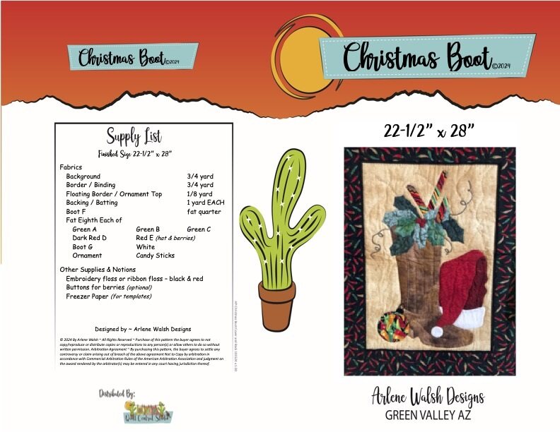 Christmas Boot Quilt Pattern - An Arlene Walsh Design, Southwest Pattern, Fused Applique