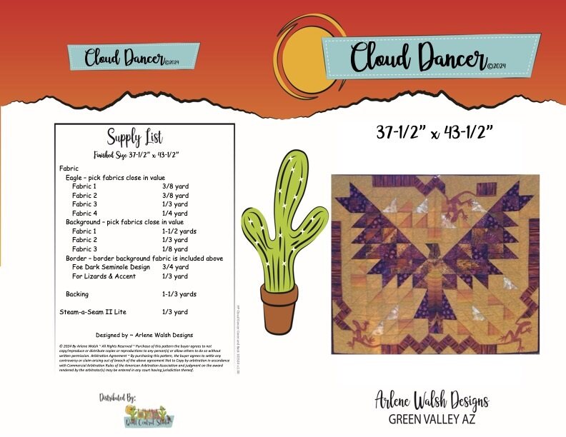Cloud Dancer Quilt Pattern - An Arlene Walsh Design, Southwest Pattern, Fused Applique