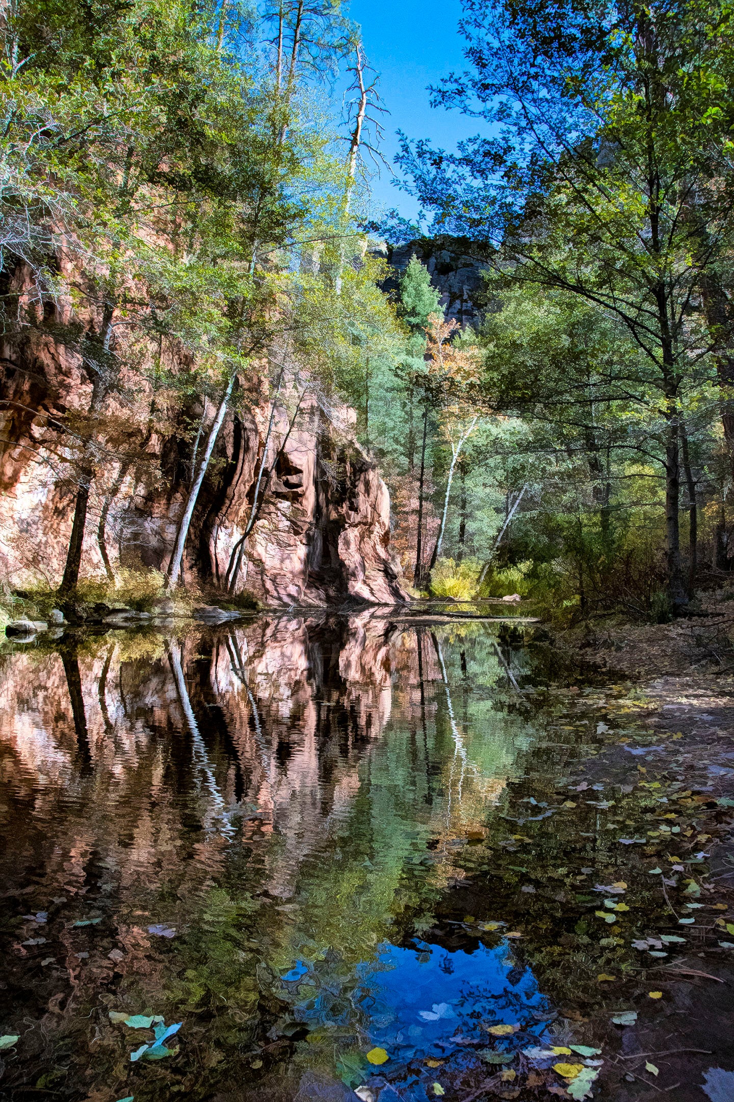 There is nothing like fall in the West Fork of the Oak Creek Canyon outside Sedona, Arizona. Breathtaking scenery and fall colors are reflected in the still waters of the creek. Panel size is 16” wide and 24” tall. Digitally printed on high quality quilting cotton, panel is washable and color fast.