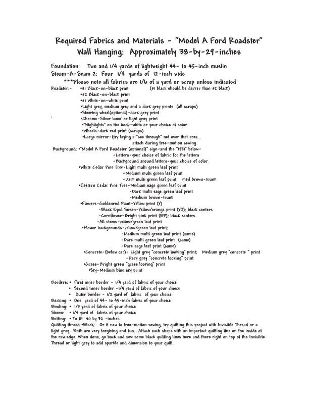 Model A Ford Quilt Pattern, Approximately Size 38” x 29”, Design to Free-Motion Line from Dog Gone Quilts
