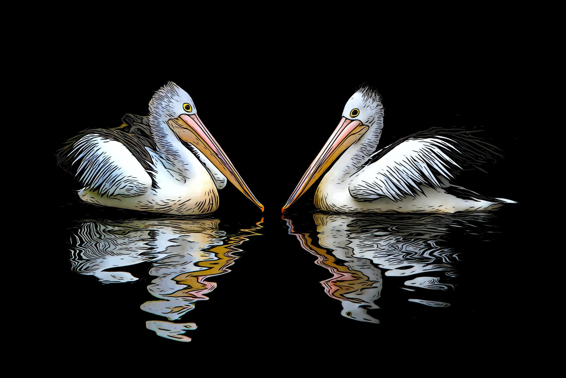 A pair of white pelicans mirrored in a body of water is an uncommon occurrence. Professionally printed on 24”X16” quilting cotton, this panel is of superior quality, washable and resistant to fading.