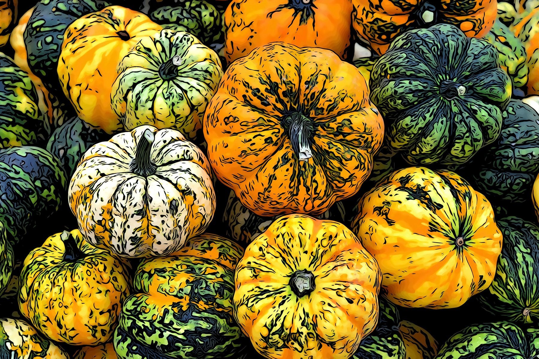 A Gaggle of Gourds Fabric Panel - FPG-006C