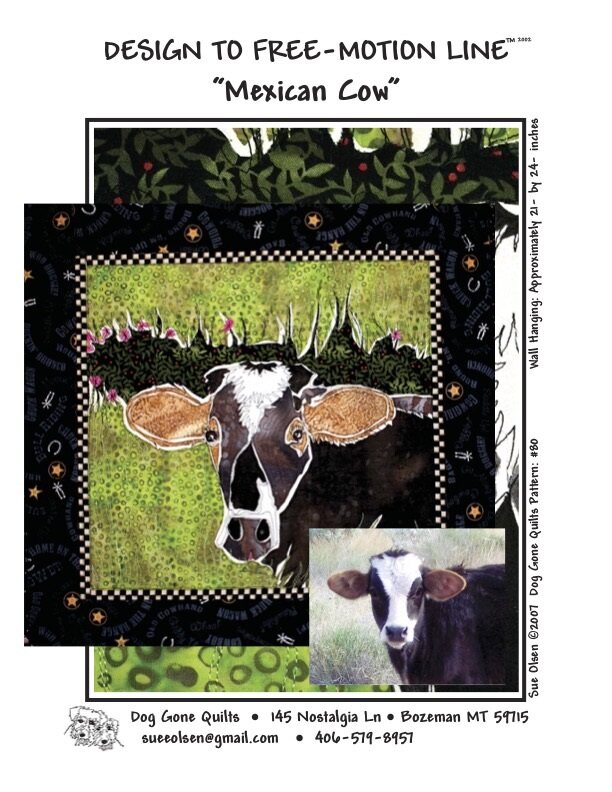 Mexican Cow Quilt Pattern, Approximately Size 21” x 24”, Design to Free-Motion Line from Dog Gone Quilts
