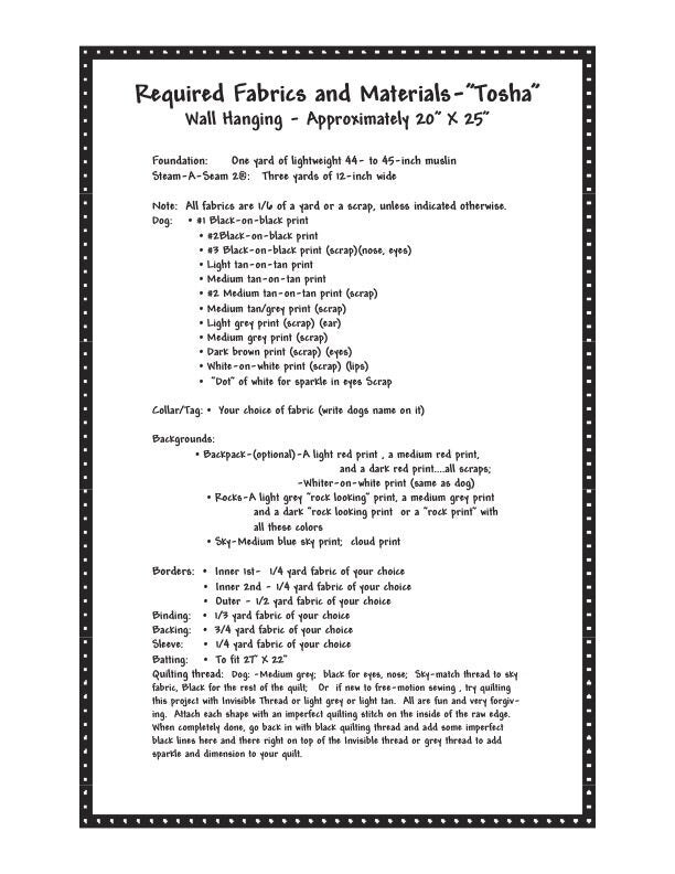 Man’s (or woman’s) best friend has never been captured so realistically and with such color, depth and artistry! Sue Olsen of Dog Gone QuiltsTM has immortalized our canine best friends with fabric in this heirloom quality, unique wall-hanging quilt. Use your own creativity and vision to make Tosha, the German Shepherd, your very own.