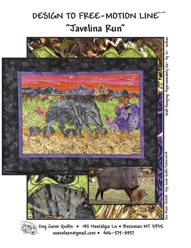 Javelina Run Quilt Pattern, Approximately Size 26” x 21”, Design to Free-Motion Line from Dog Gone Quilts