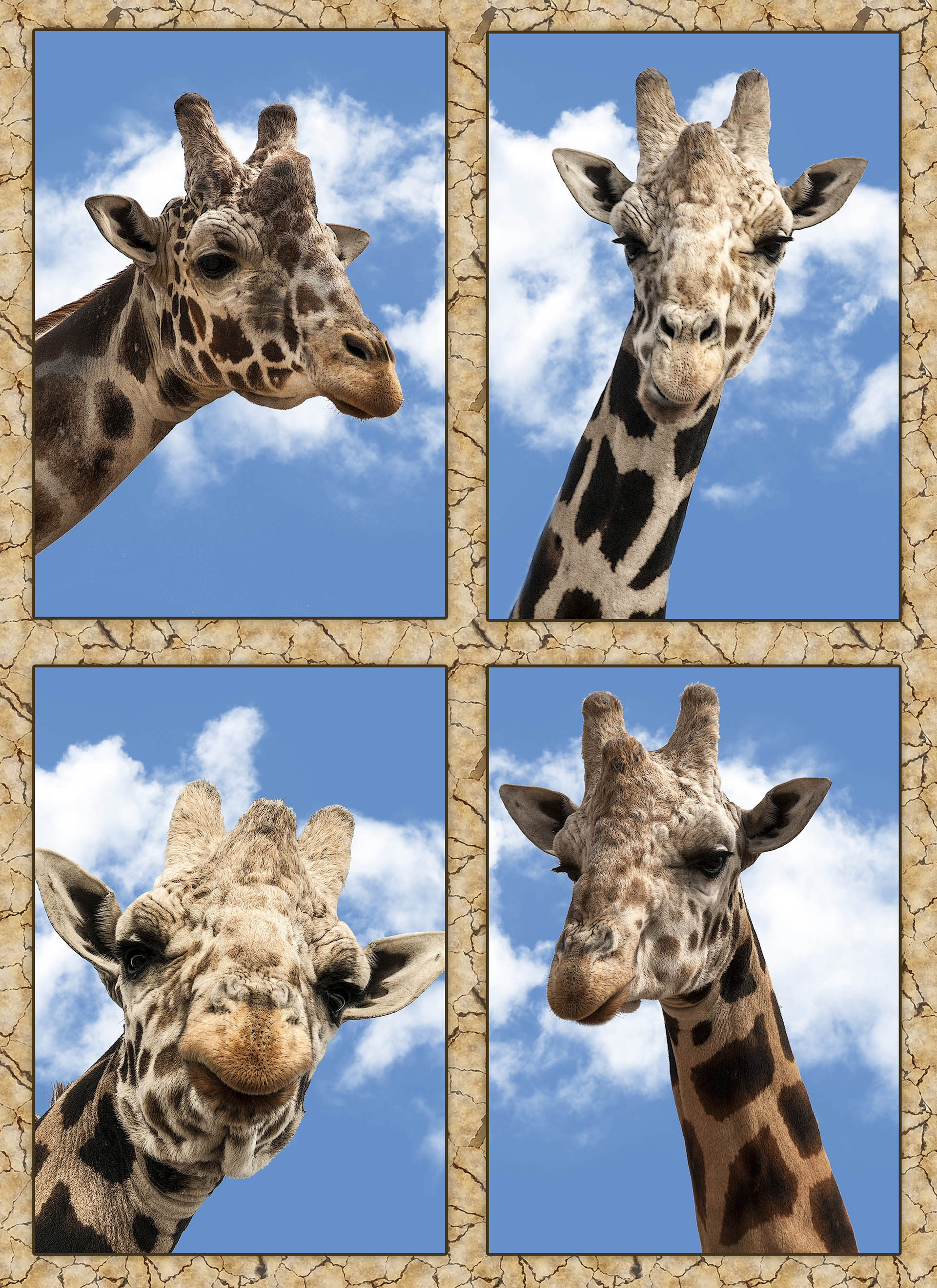 This high quality, digitally printed, 100% cotton panel provides stunning, close-up detail of four welcoming giraffes. The fabric measures 22" x 15.5". Featuring vibrant colors and intricate details, this fabric panel is the perfect addition to any quilting, sewing, or crafting project. Enjoy 22" x 15.5" of pure giraffe-filled fun.