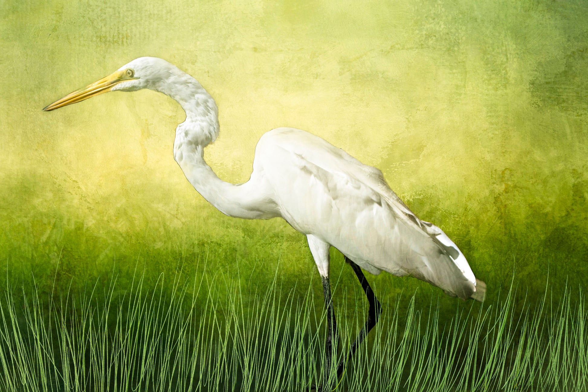 Silent Stalker Snowy Egret Fabric Panel - BSB-002C