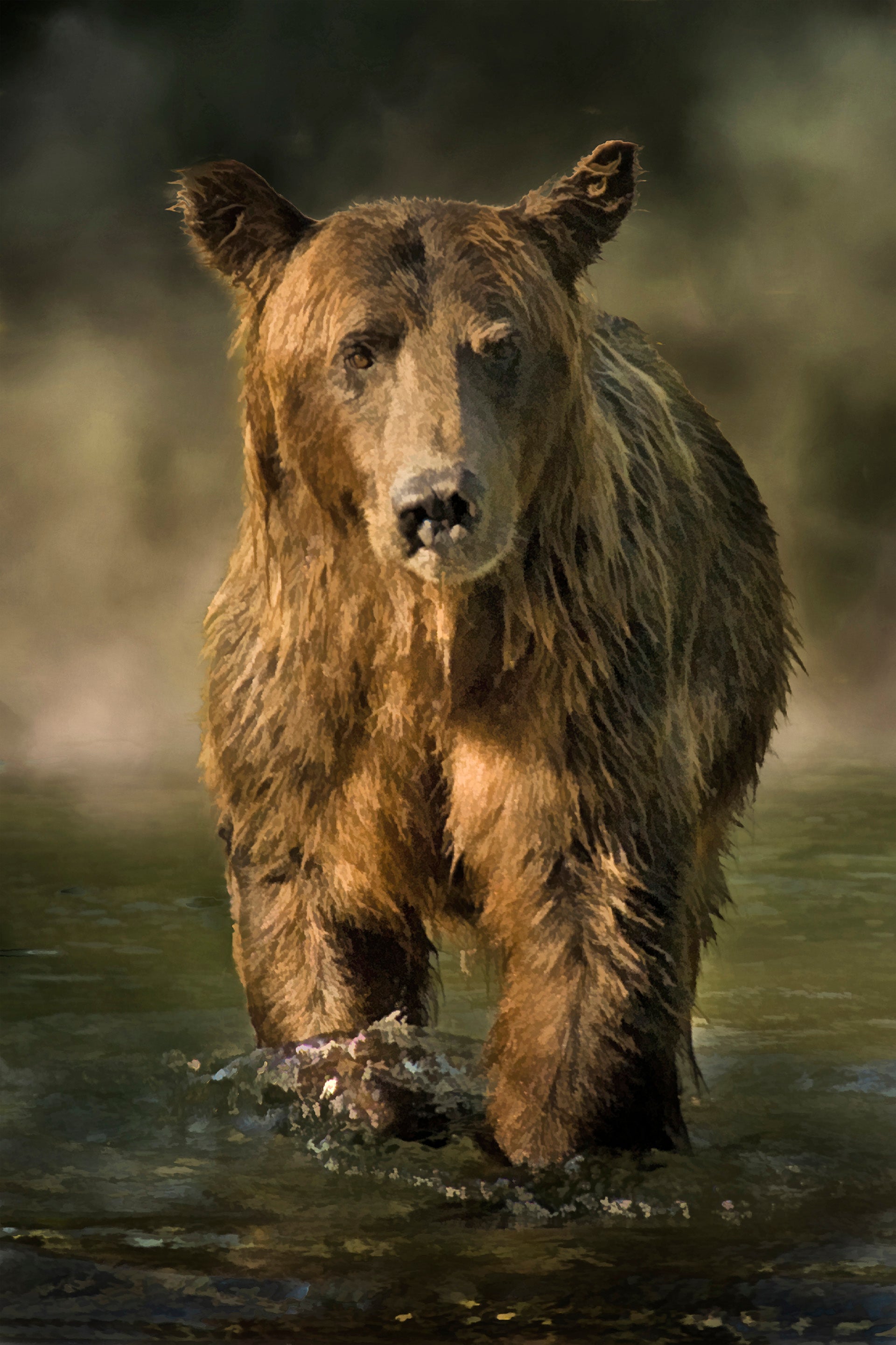 Vertical Grizzly Bear Fabric Panel - ANW-040C