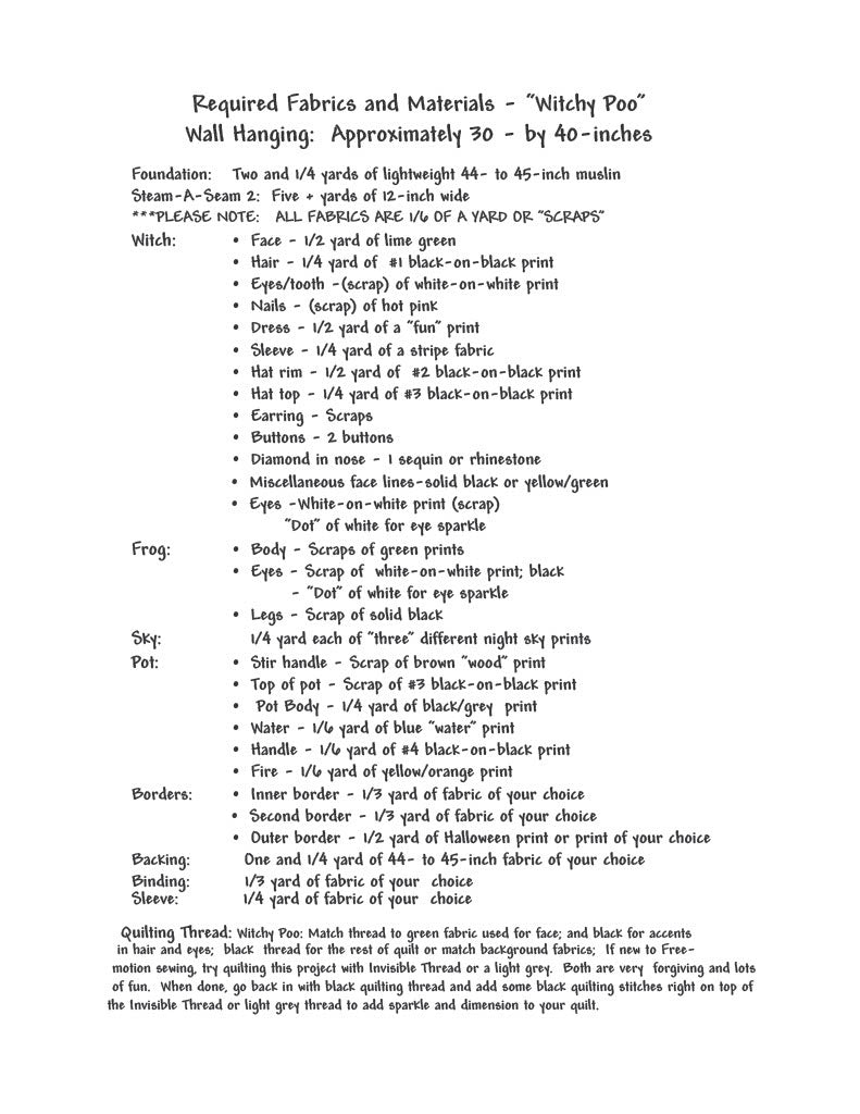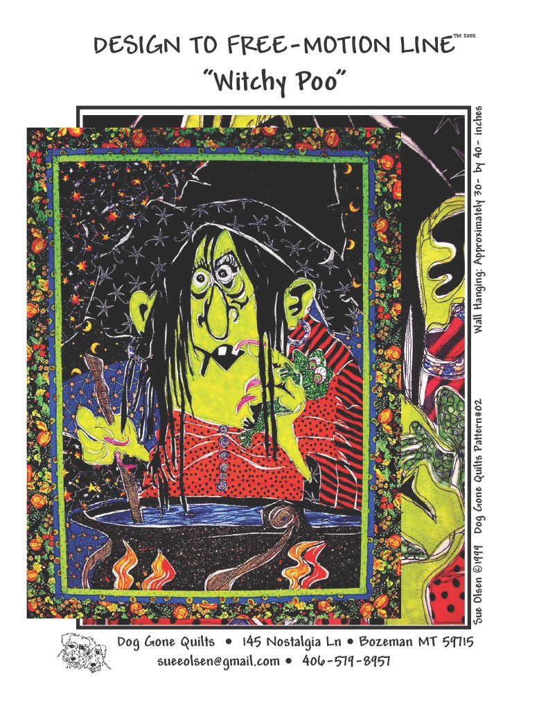 Witchy Poo Quilt Pattern, Approximately Size 30” x 40”, Design to Free-Motion Line from Dog Gone Quilts