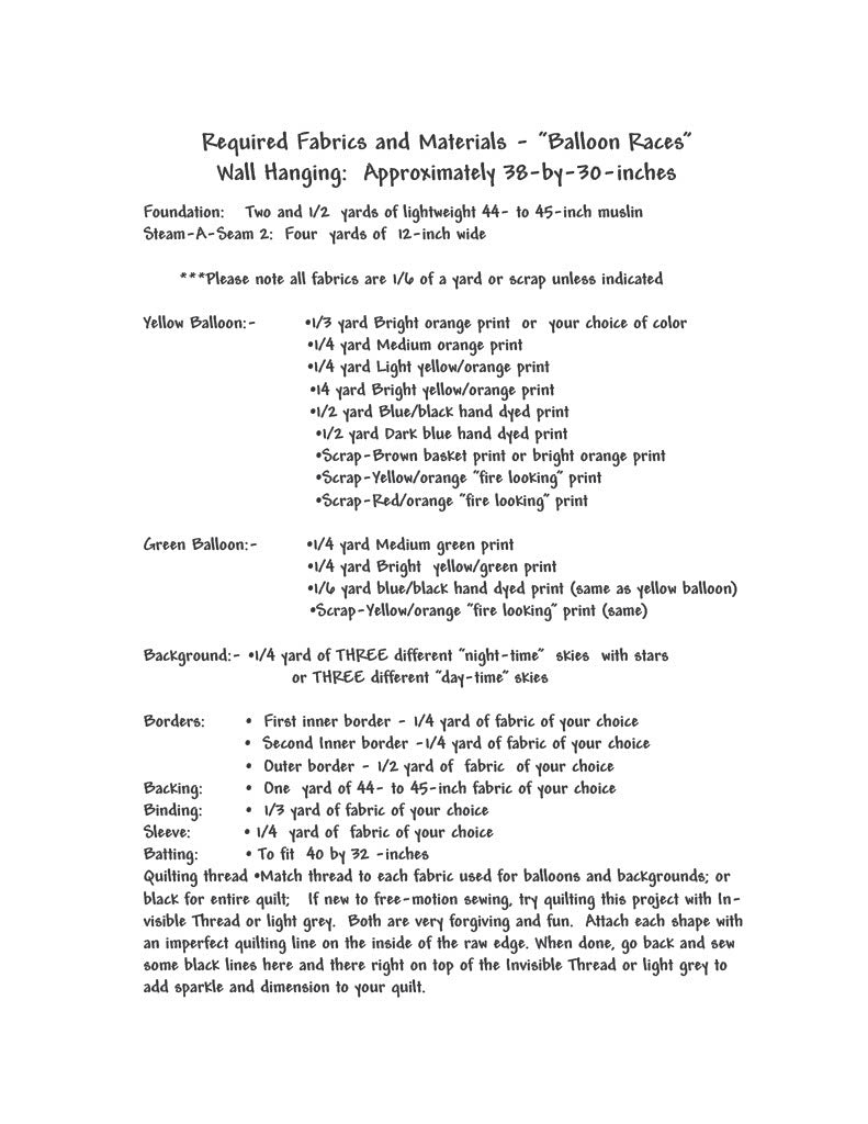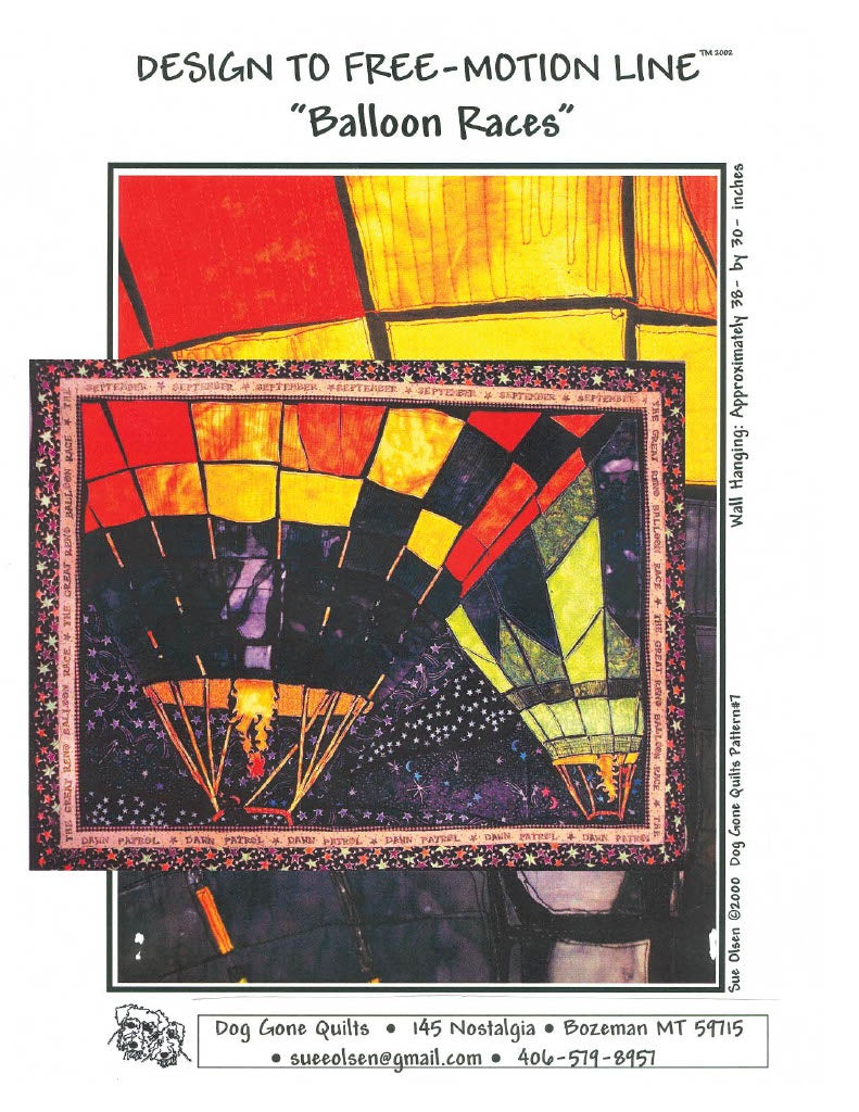Balloon Races Quilt Pattern, Size 38” x 30”, Design to Free-Motion Line from Dog Gone Quilts