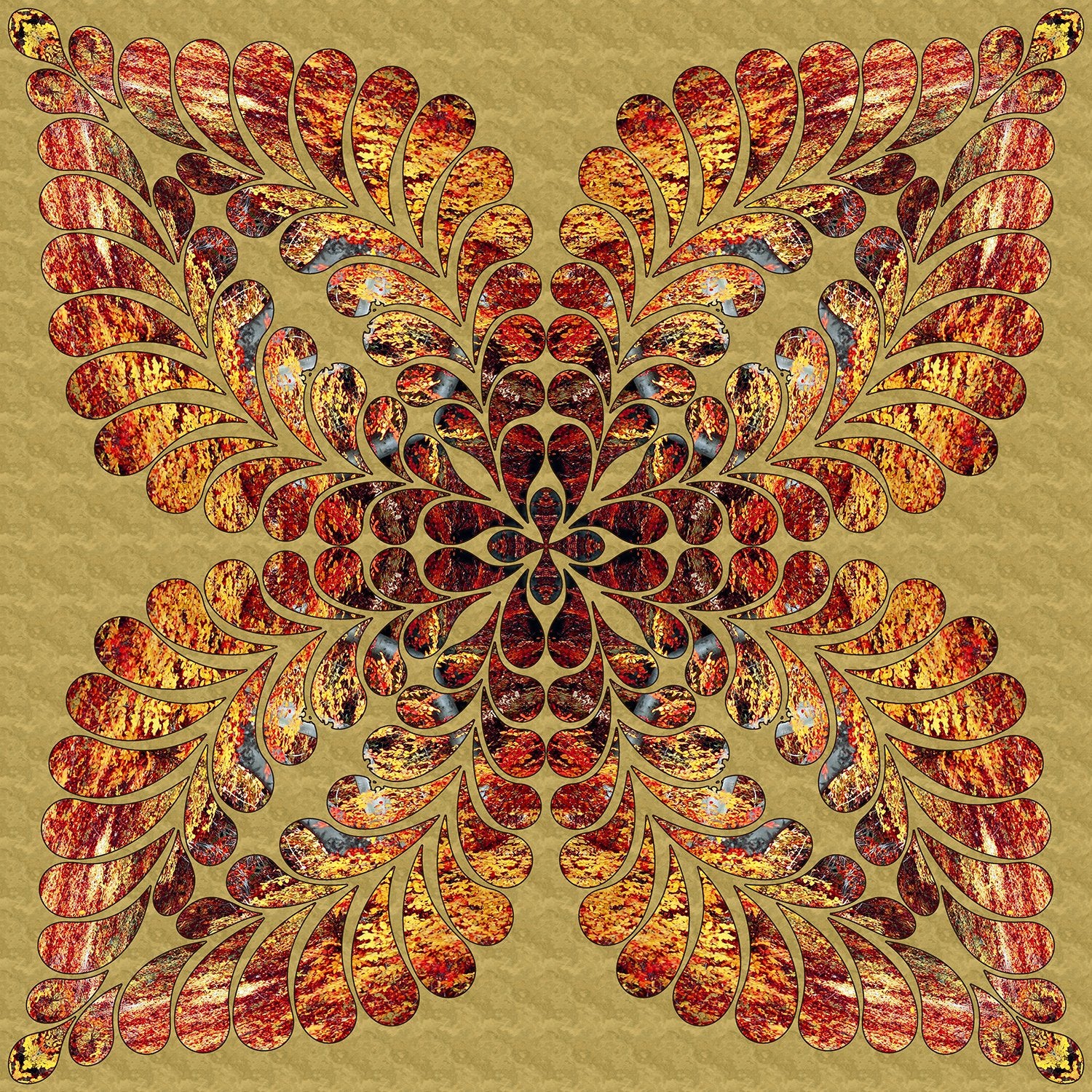 Our panels boast unparalleled design. Typically, a photograph provides the base, which we then modify using a combination of adjustments to colors, contrast, and background. Printing is done with a digital commercial-grade process on superior quilting cotton, providing a soft touch, bold color, superior clarity, and lasting colorfastness. In addition, the panels can be safely washed.
