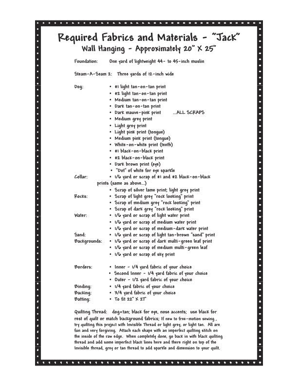 Man’s (or woman’s) best friend has never been captured so realistically and with such color, depth and artistry! Sue Olsen of Dog Gone QuiltsTM has immortalized our canine best friends with fabric in this heirloom quality, unique wall-hanging quilt. Use your own creativity and vision to make Jack, the Labrador Retriever, your very own.