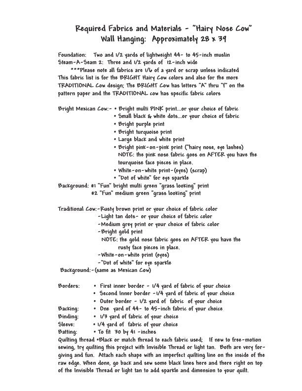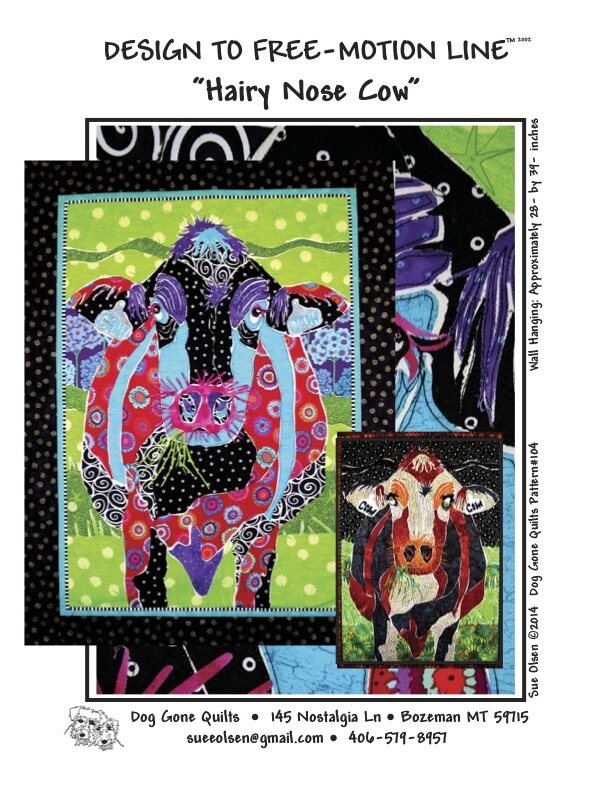 Hairy Nose Cow Quilt Pattern, Approximately Size 28” x 39”, Design to Free-Motion Line from Dog Gone Quilts
