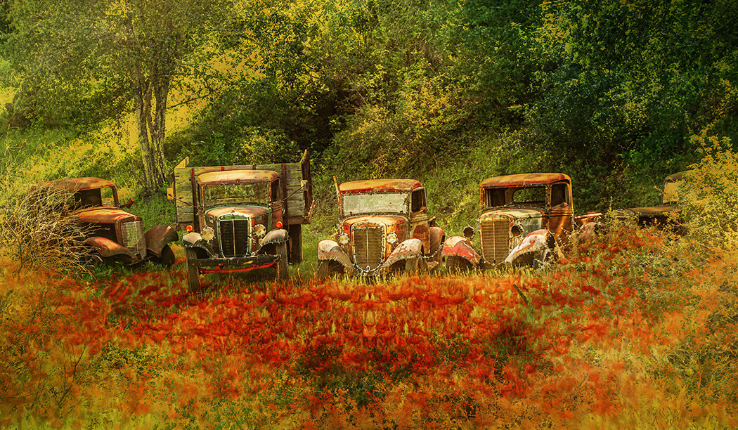 Discovering a field of classic trucks is an extraordinary find, and this panel captures that moment. At 24"x14", the panel is digitally printed on high quality quilting cotton - both washable and colorfast.