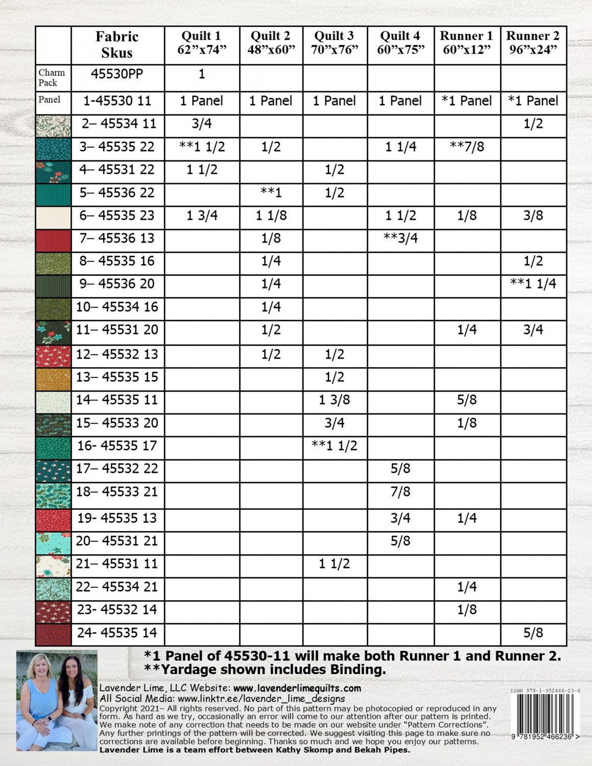 Use your favorite panels to make these 4 easy quilts and 2 table runners. Fabric we used is Cheer and Merriment by Fancy That Design House by Moda Fabrics.