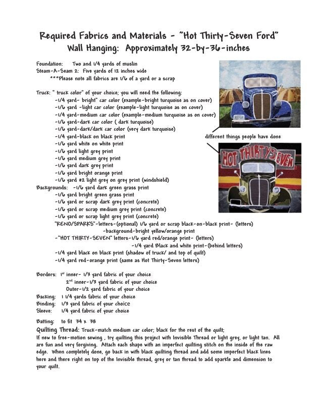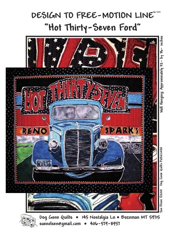 Hot Thirty-Seven Ford Quilt Pattern, Approximately Size 32” x 36”, Design to Free-Motion Line from Dog Gone Quilts