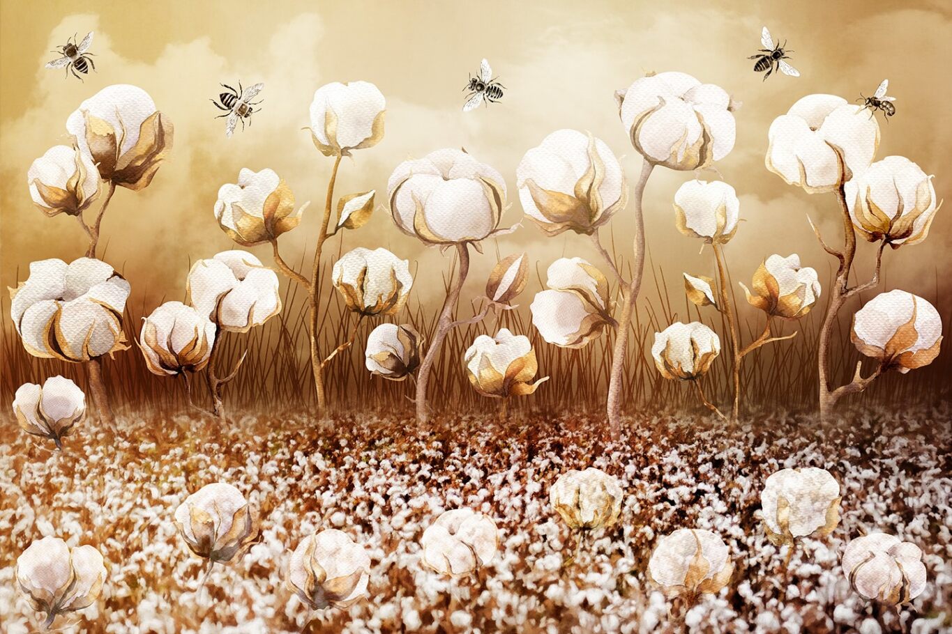 Out in the Cotton Field Fabric Panel - FLR-049C