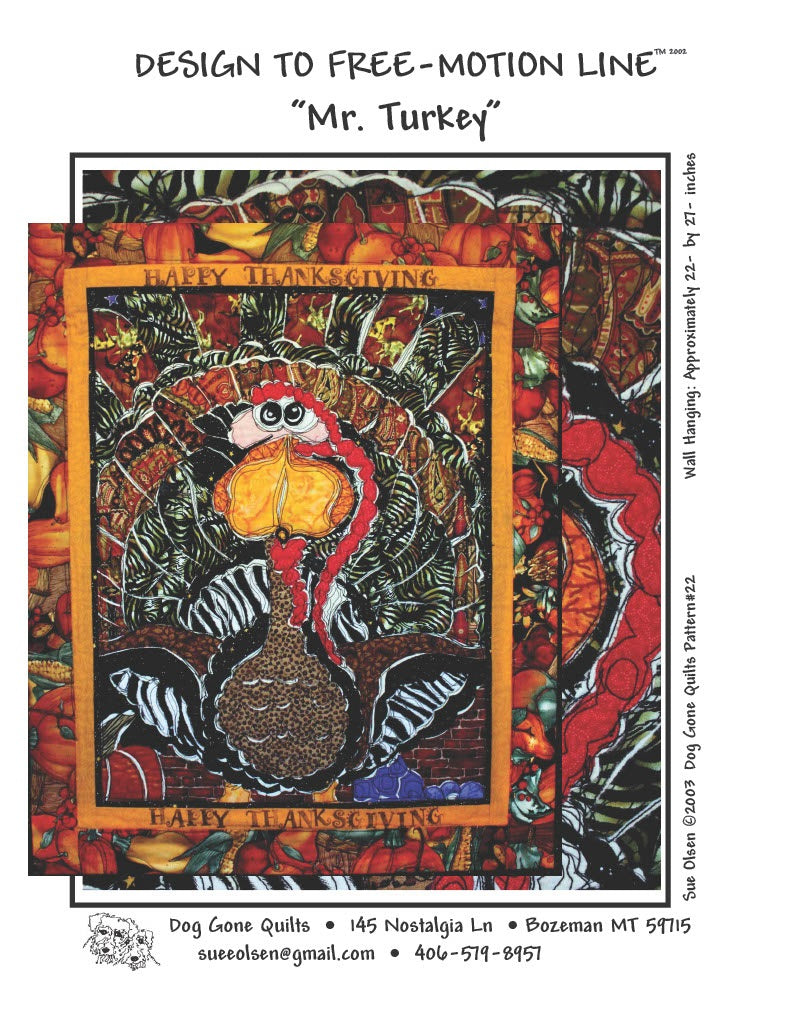Mr. Turkey Quilt Pattern, Approximately Size 22” x 27”, Design to Free-Motion Line from Dog Gone Quilts