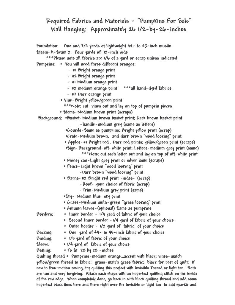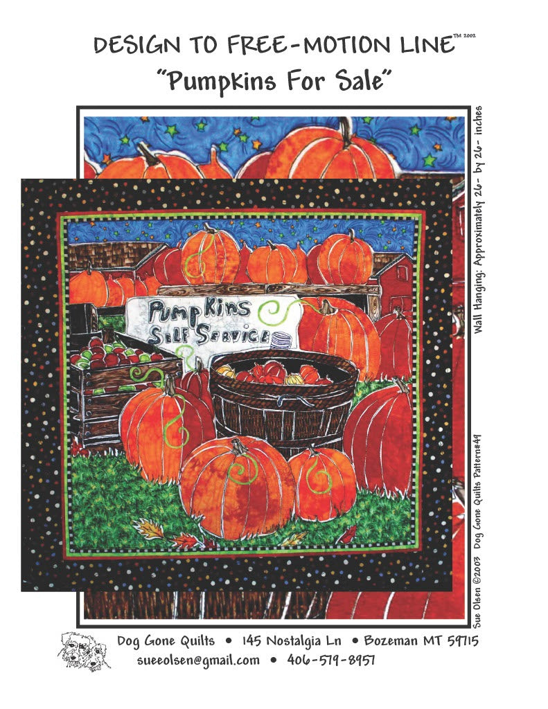 Pumpkins for Sale Quilt Pattern, Approximately Size 26” x 26”, Design to Free-Motion Line from Dog Gone Quilts