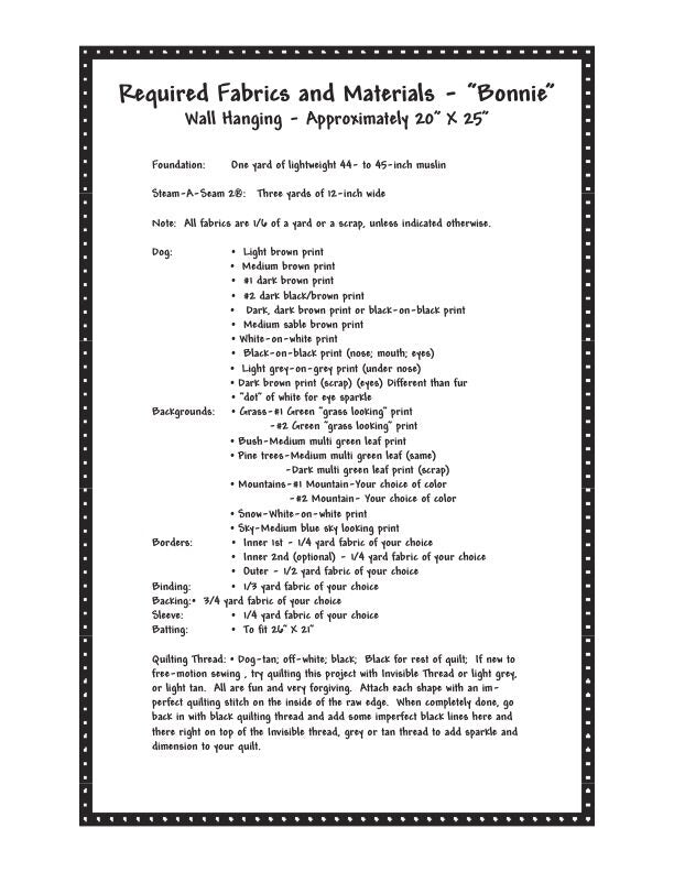 Man’s (or woman’s) best friend has never been captured so realistically and with such color, depth and artistry! Sue Olsen of Dog Gone QuiltsTM has immortalized our canine best friends with fabric in this heirloom quality, unique wall-hanging quilt. Use your own creativity and vision to make Bonnie, the Shetland Sheepdog, your very own.