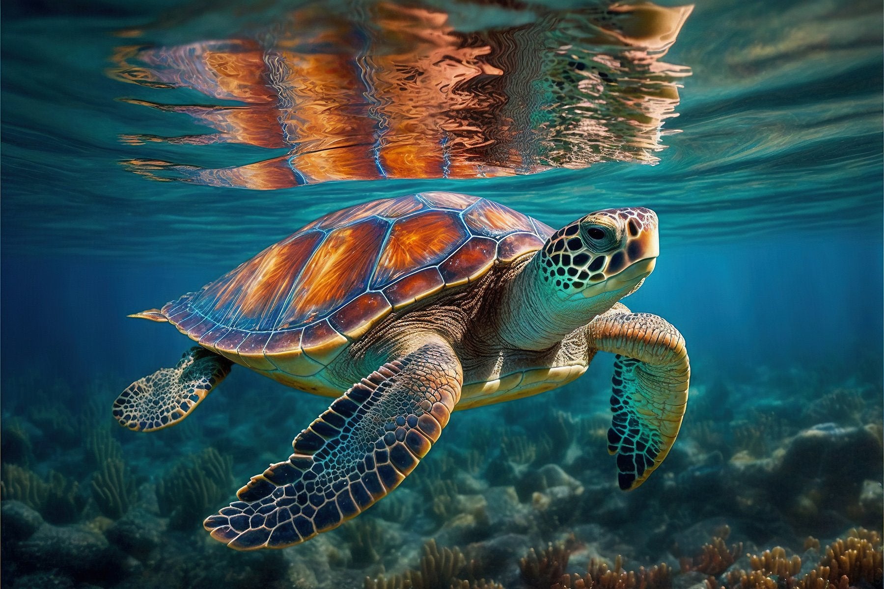 Sea Turtle Reflection Fabric Panel - OCE-018C