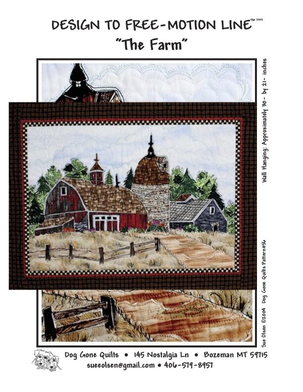 The Farm Quilt Pattern, Approximately Size 30” x 21”, Design to Free-Motion Line from Dog Gone Quilts