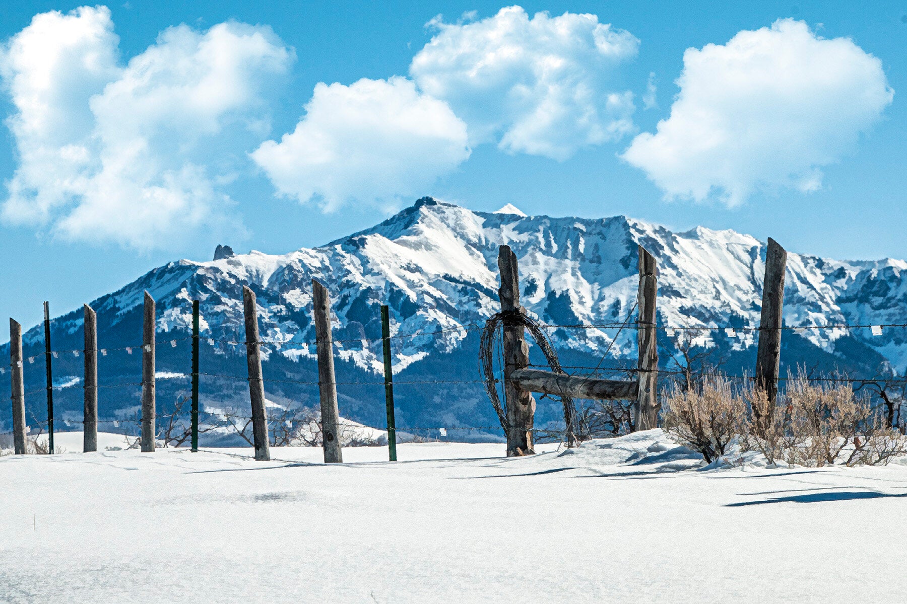 Snowy Fence and Mountain Fabric Panel - SCO-015C