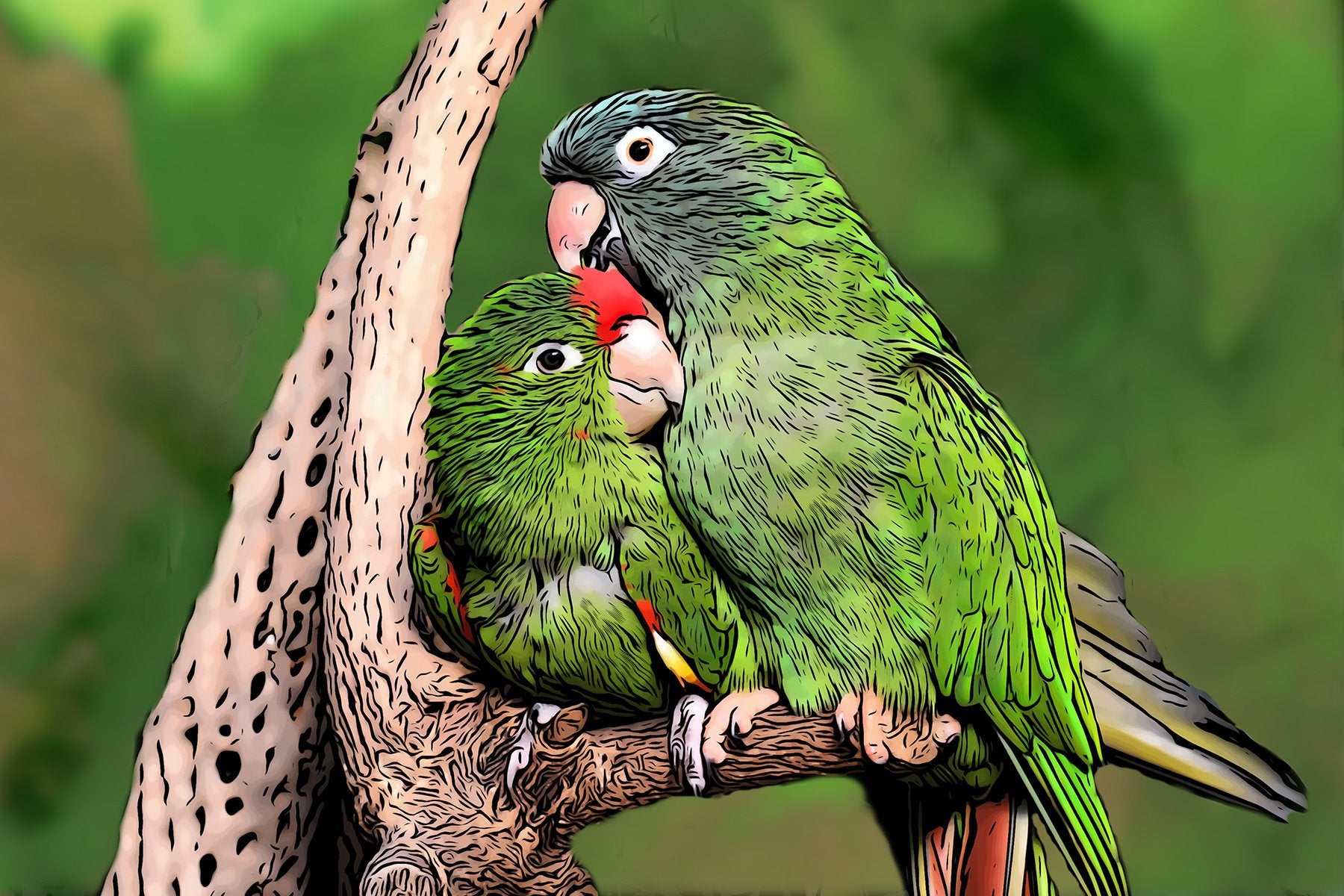 This 24”X16” quilting cotton fabric panel features a detailed illustration of two close companion parrots and is suitable for thread painting. The panel is printed on high-quality materials and is both washable and colorfast.