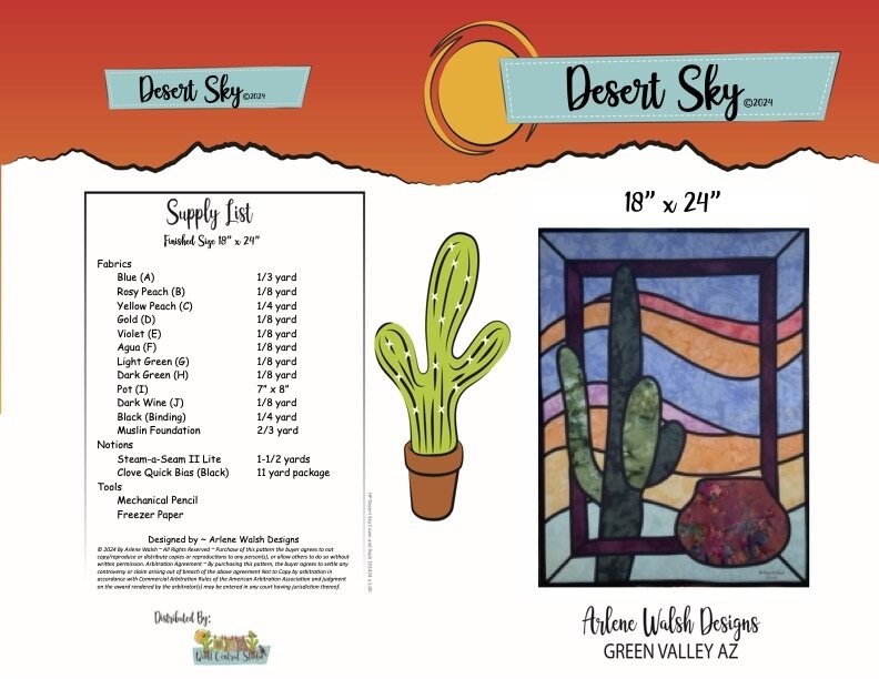 Desert Sky Quilt Pattern - An Arlene Walsh Design, Southwest Pattern, Fused Applique