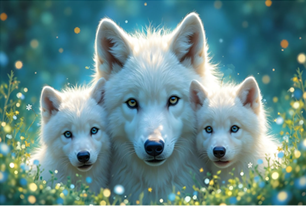 Fun Size White Wolf Family Fabric Panel - FUN-022