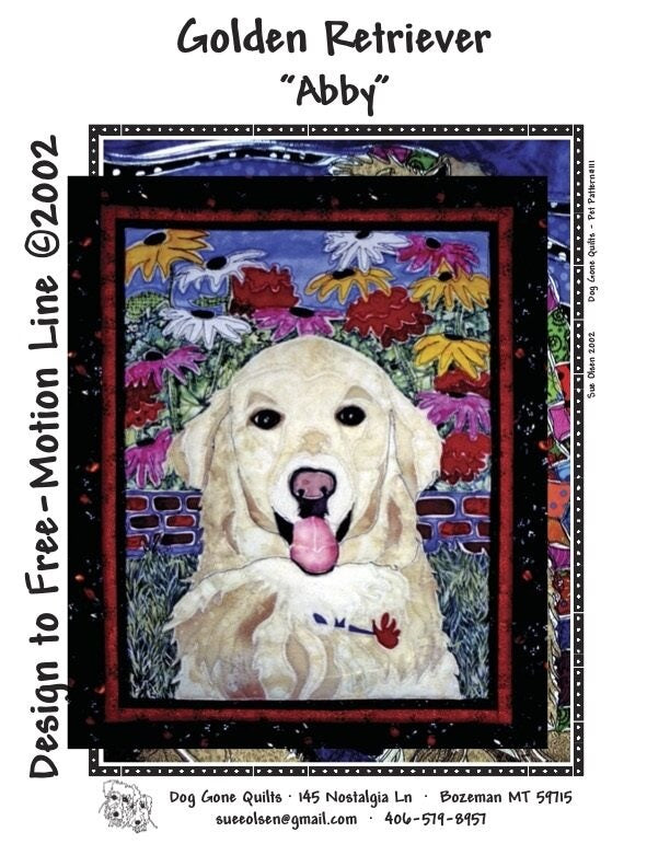 Golden Retriever "Abby" Quilt Pattern, Approximately Size 20” x 25”, Design to Free-Motion Line from Dog Gone Quilts