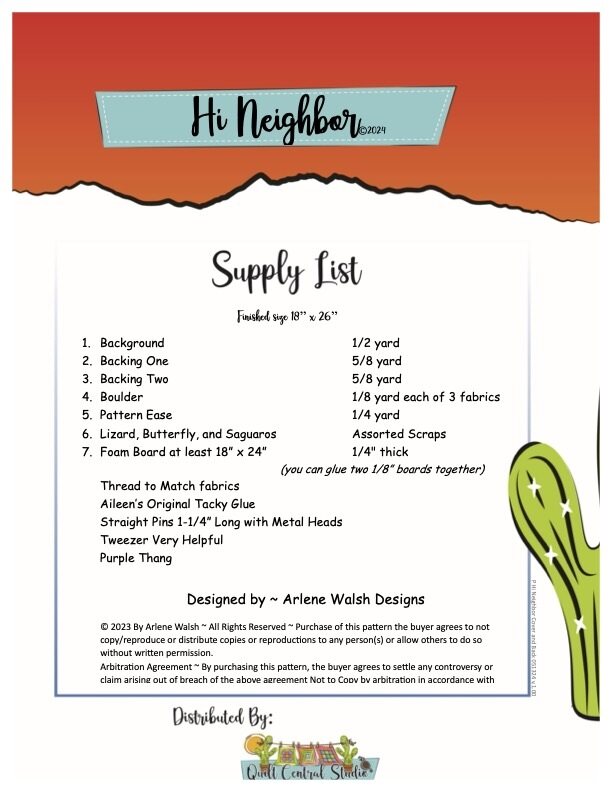 Hi Neighbor Quilt Pattern - An Arlene Walsh Design, Southwest Pattern, Fused Applique