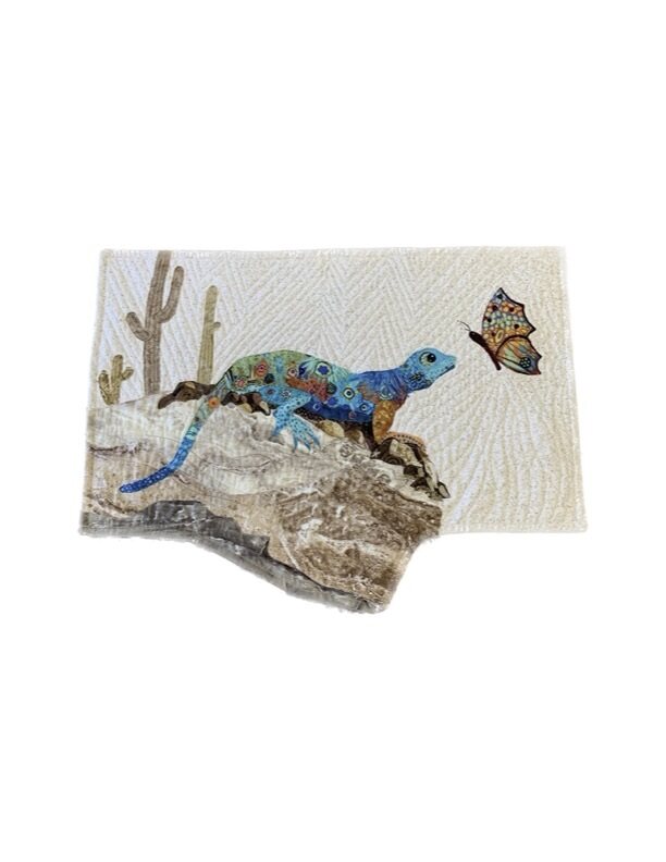 Whether as a pet in a terrarium, or in the open desert, lizards are lovely colorful creatures that lend themselves to colorful interpretation in fiber. We dare you to make just one, as this lizard and butterfly are simply fast and fun. For more whimsy, add beads and/or other embellishment of your choosing to make a truly one-of-a-kind piece of art.