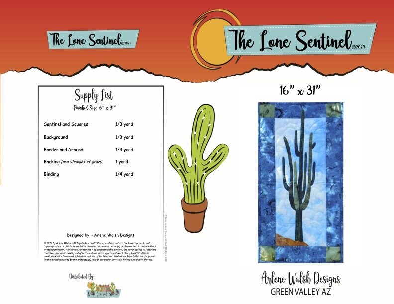 Lone Sentinel Quilt Pattern - An Arlene Walsh Design, Southwest Pattern, Fused Applique