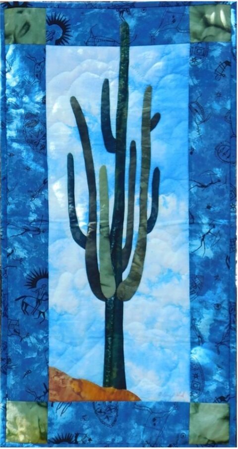 The mighty Saguaro, the giant in the forest of the desert – classic admired flora, home to many small and large creatures of the desert. Make your own fabric art depicting this mighty tree, frequently the lone watchman in a slice of desert. Make as shown, or embellish, or reflect the changing seasons of the desert in a series of these guardians – the choice is yours and the final product always original.