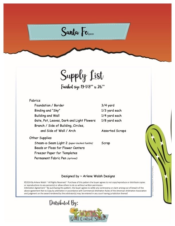 Santa Fe Quilt Pattern - An Arlene Walsh Design, Southwest Pattern, Fused Applique