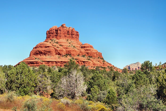 Bell Rock, located in Sedona, Arizona, is one of the city’s most recognizable and photographed landmarks. It stands at an impressive 4,000 feet above sea level and is a focal point for visitors and locals alike due to its striking red rock formation. The rock is named after its unique bell shape that resembles the prized possession of a Christmas bell. Surrounded by breathtaking views of the surrounding landscape, This Bell Rock panel offers an extraordinary experience for your next project. Featuring a 20" x 13.75" panel digitally printed on high quality quilting cotton, the fabric is both washable and colorfast.
