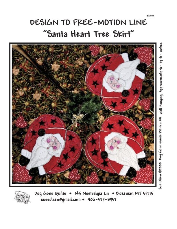 Santa Heart Tree Skirt Quilt Pattern, Approximately Size 41” x 41”, Design to Free-Motion Line from Dog Gone Quilts