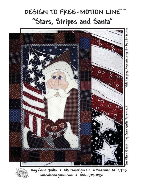 Stars, Stripes and Santa Quilt Pattern, Approximately Size 18” x 28”, Design to Free-Motion Line from Dog Gone Quilts